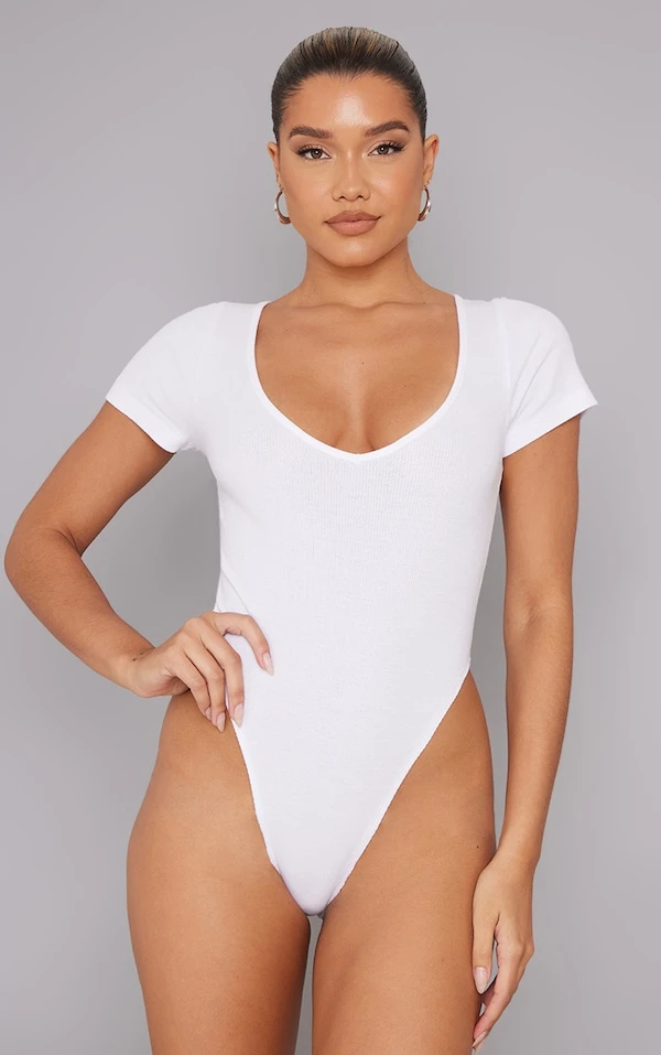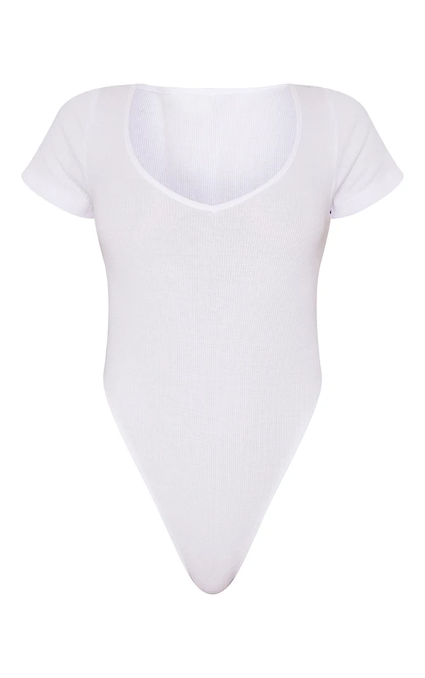 Body basique côtelé blanc à col en V
