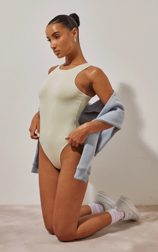 Body basique en coton vert pâle à dos nageur