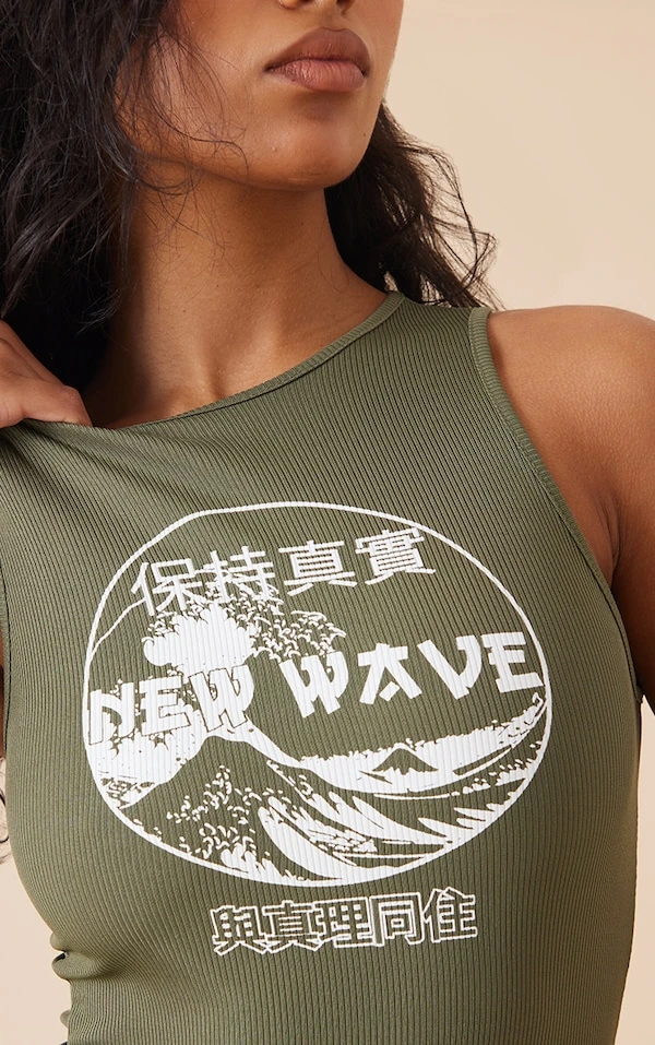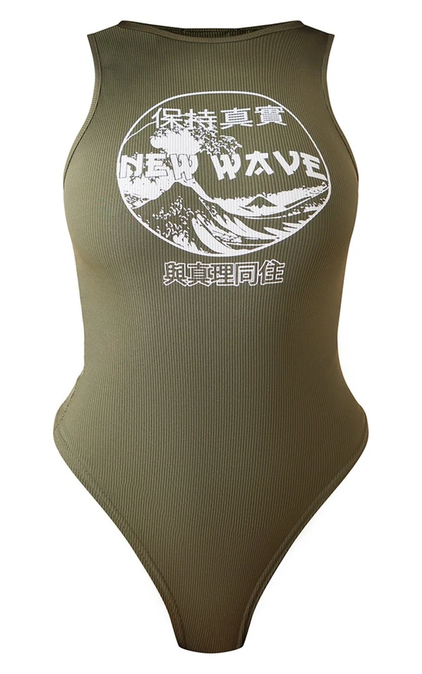 In love de ce body ! Avec sa couleur kaki ultra tendance, son dos nageur et son imprimé New Wave. Il suffit de le porter avec un pantalon cargo et une paire de baskets pour chiller avec un max de style. Crush sur vous !