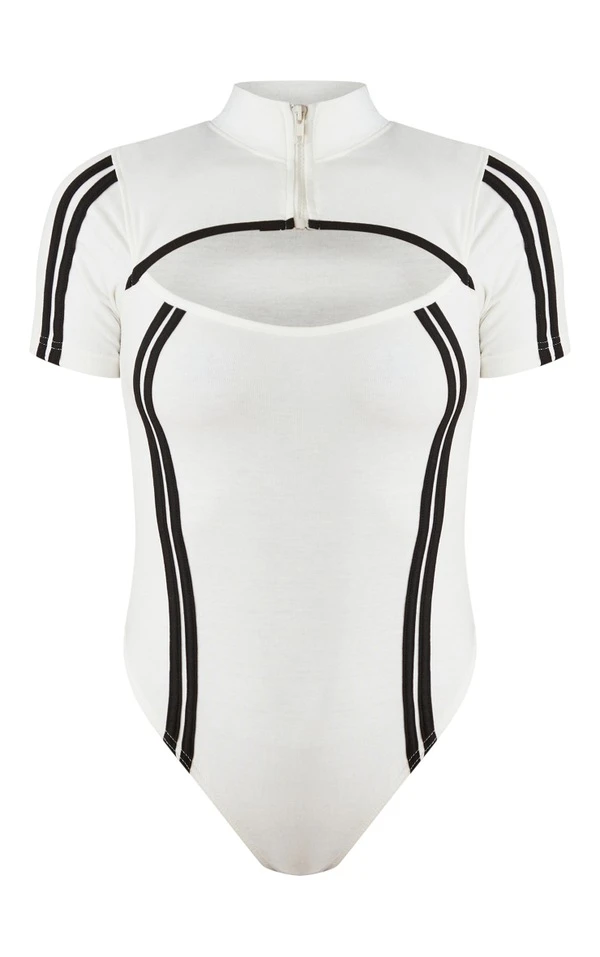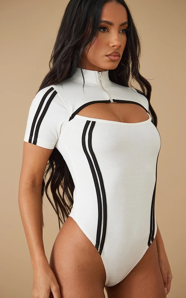 La pièce préférée des fashionista, ce body ! Avec sa couleur crème toute douce et son design à bandes, il nous fait rêver. On aime beaucoup le porter avec un pantalon en nylon noir et des baskets blanches. Et vous, vous le portez comment ?