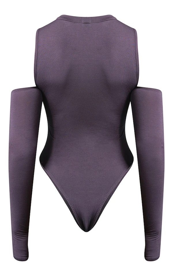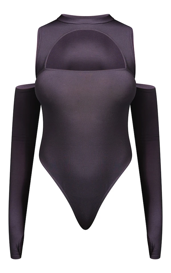 Body en jersey gris anthracite à col haut et découpes