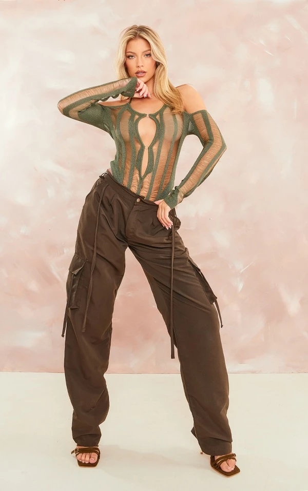 Body en maille tricot ajourée kaki à détail anneau