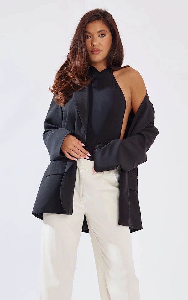 Super belle dans ce body à la coupe moulante. On adore son coloris noir classique, son design ouvert dans le dos et son col haut qui vous va si bien. Plus qu’à enfiler un cargo et une paire de talons. C’est glam et très luxe.
