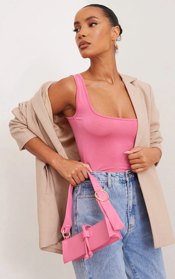 Canon le body rose fluo, on aime toujours autant cette couleur ! Avec sa coupe moulante, son col rond et son design tout simple, il nous a fait craquer. Il ne manque qu’un jean et une paire de mules à talons ! So 2000.
