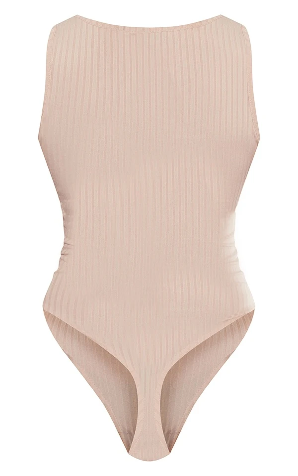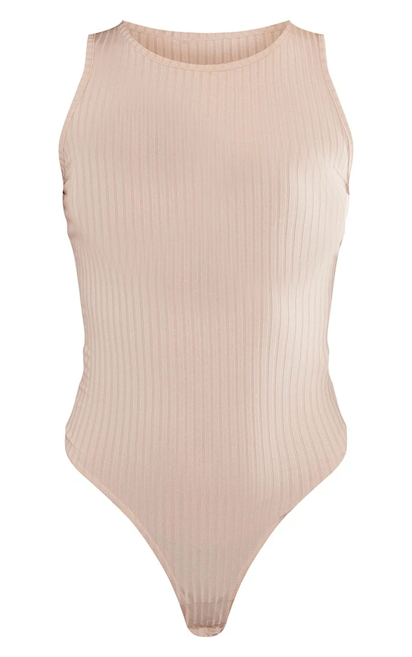Body sans manches gris pierre côtelé à taille cintrée