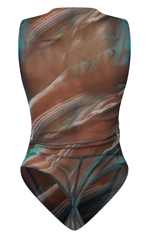 Totalement dans de ce body canon dans son coloris vert sublimé par son imprimé abstrait arty, tout ce qu’il faut. On aime sa matière en mesh que l’on porte avec une pantalon en similicuir et des talons pour un look de femme fatale qui vous va si bien.