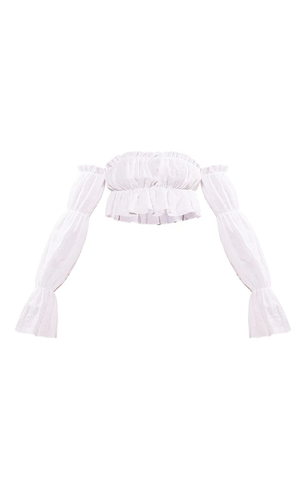 Crop top col bardot texturé volanté blanc