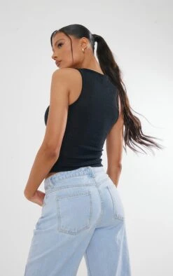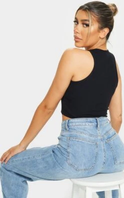Toujours besoin d’un crop top et on adore ce modèle ! Avec sa matière slinky, son coloris noir, sa coupe cintrée et son dos nageur, il a toutes les armes pour nous faire craquer. On le porte avec tout !