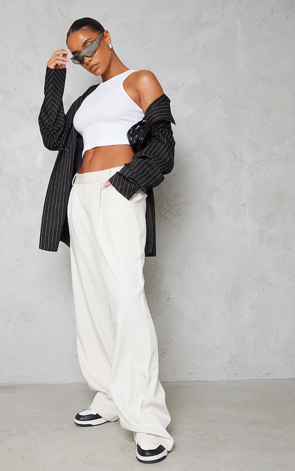 La simplicité à l’état pur dans ce débardeur ! On aime tellement sa matière côtelée de couleur blanche, son design à col nageur flatteur et son style minimaliste très cool. Il se porte avec un pantalon en toile et des baskets.