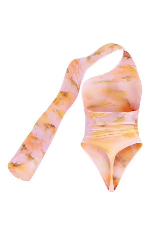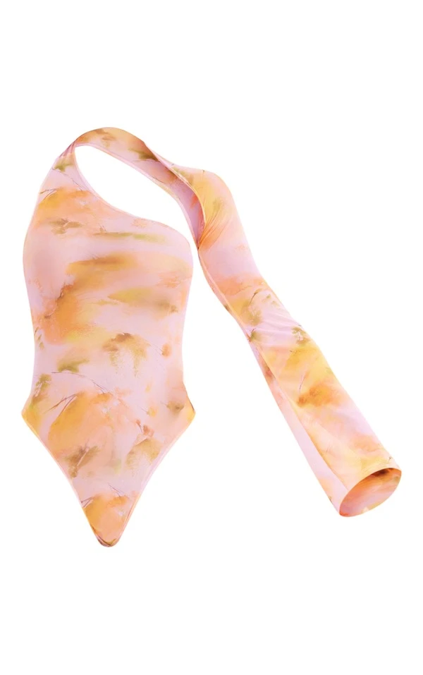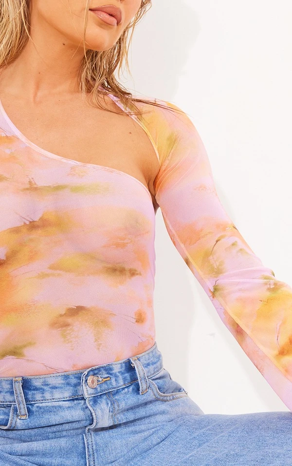 Body asymétrique en mesh imprimé rose