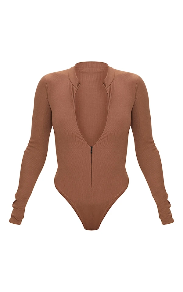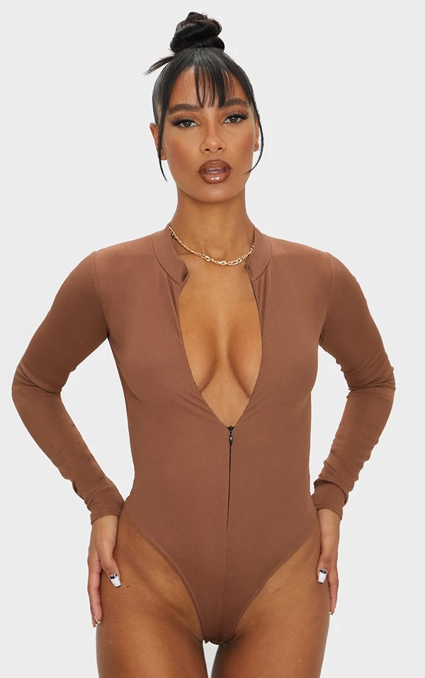 Canonissime le body marron! Avec sa matière côtelée, ses manches longues et son zip, il nous a fait complètement craquer. Minimal, hot, indispensable.