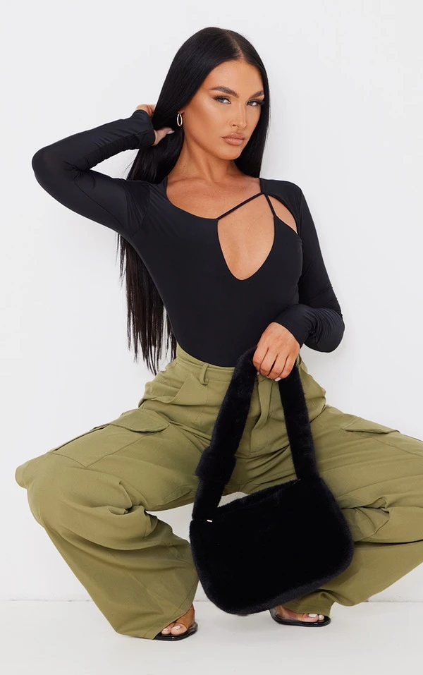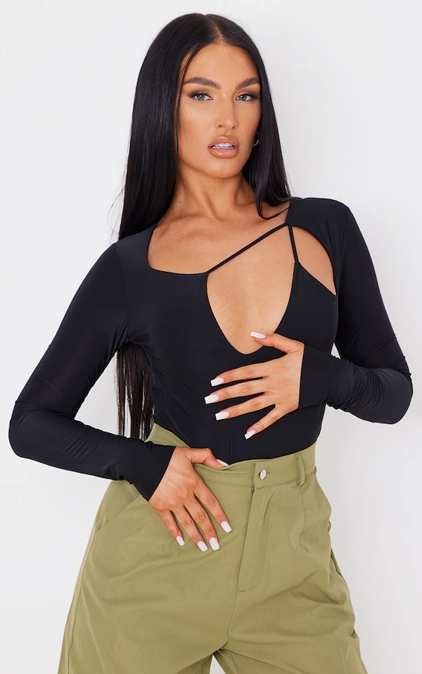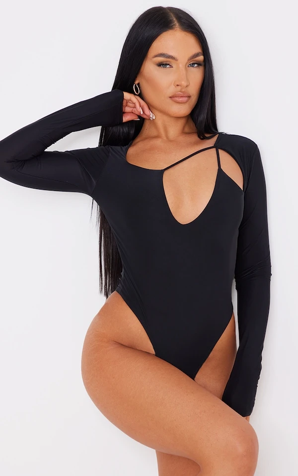 Cute le body moulant ! Avec son noir, ses manches longues, ses lanières et ses découpes, il nous a fait craquer. Il ne manque qu’un legging et une paire de sandales à talons !