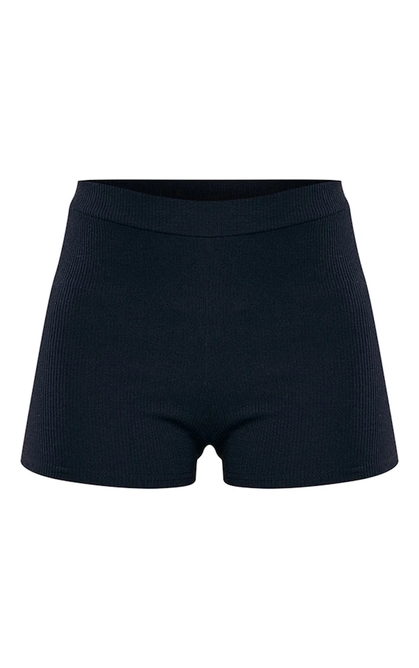 Mini short noir crêpé et côtelé