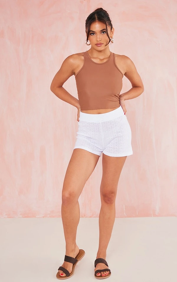 Canonissime ce mini-short ! Avec sa couleur blanche, sa matière en maille pointelle et le détail de son noeud, on ne peut pas résister. Il vous suffit de le porter avec un top moulant et une paire de baskets et le tour est joué. What a babe !