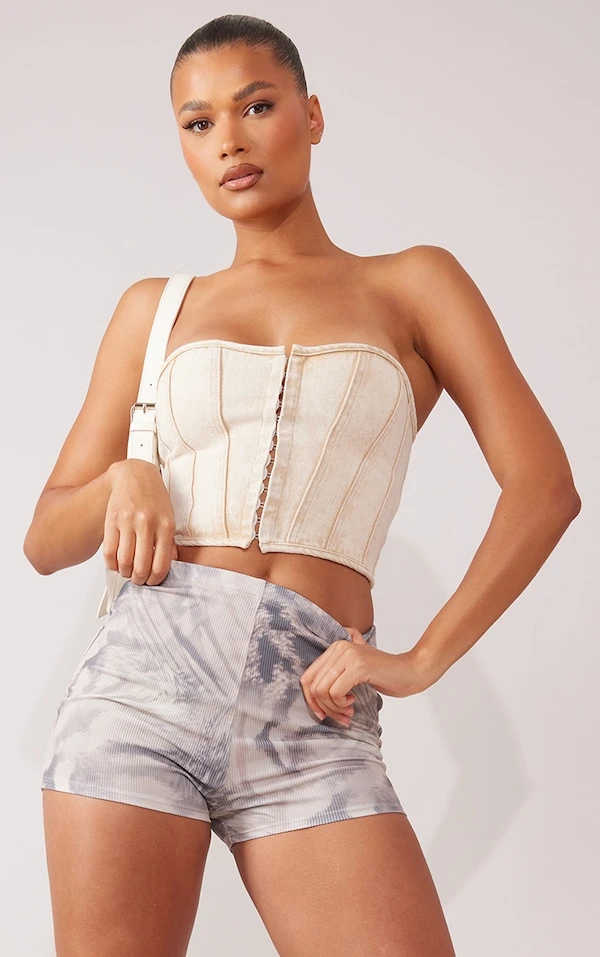Mini short côtelé doux gris à imprimé animal délavé