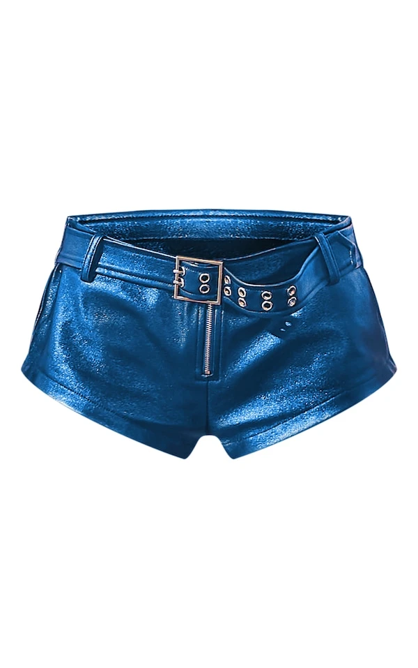 Mini short disco bleu à ceinture