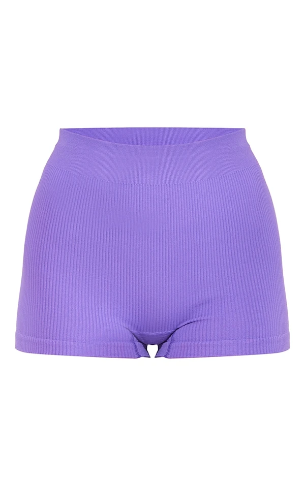 Trop belle en violet ! On adore ce mini-short à la matière côtelée canon, son coloris violet et son détail contours, c’est à porter avec le top assorti et voilà.
