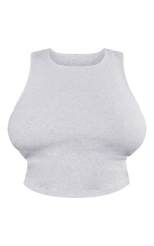 Plus Débardeur côtelé basique gris chiné à dos nageur