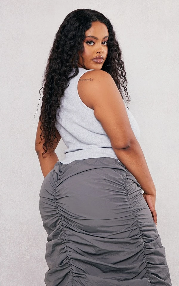 Ce débardeur est un classique à ne surtout pas louper. Avec sa matière côtelée très flatteuse, son coloris gris chiné qui va avec tout et sa coupe à dos nageur, on craque illico. On l’aime porté avec une jupe cargo et une paire de mules à talons. C’est un look qui nous fait crusher de suite.
