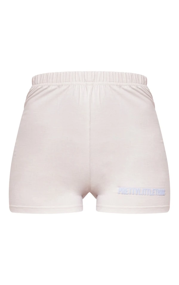 PRETTYLITTLETHING Mini-short gris pâle à slogan imprimé