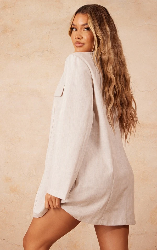 Simple et tellement chic la robe blazer ! On adore celle-ci avec ses boutons écaille de tortue et son effet lin gris pierre très classe. Il ne manque que des talons et une pochette pour compléter ce look de soirée !