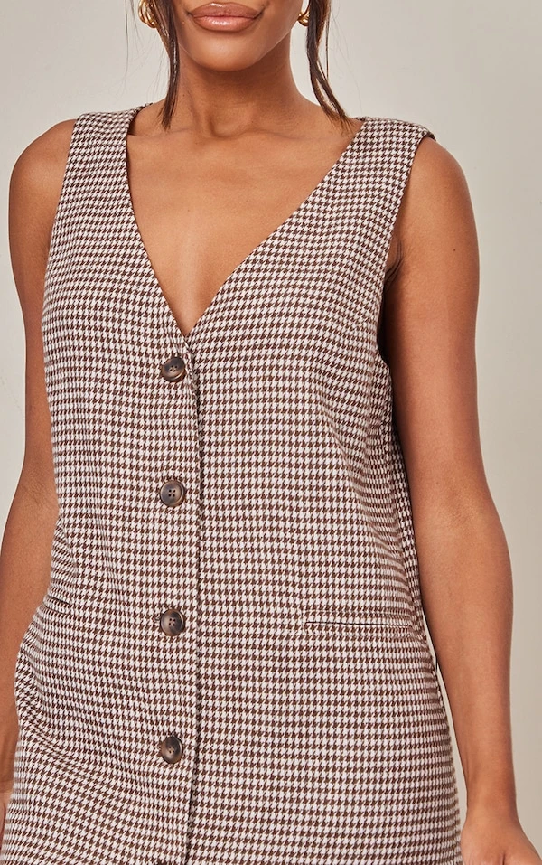 Robe Blazer Style Gilet Oversize Chocolat En Maille Sergée à Carreaux