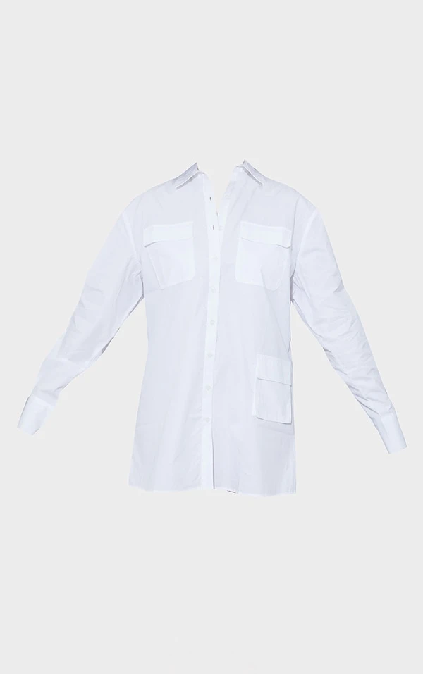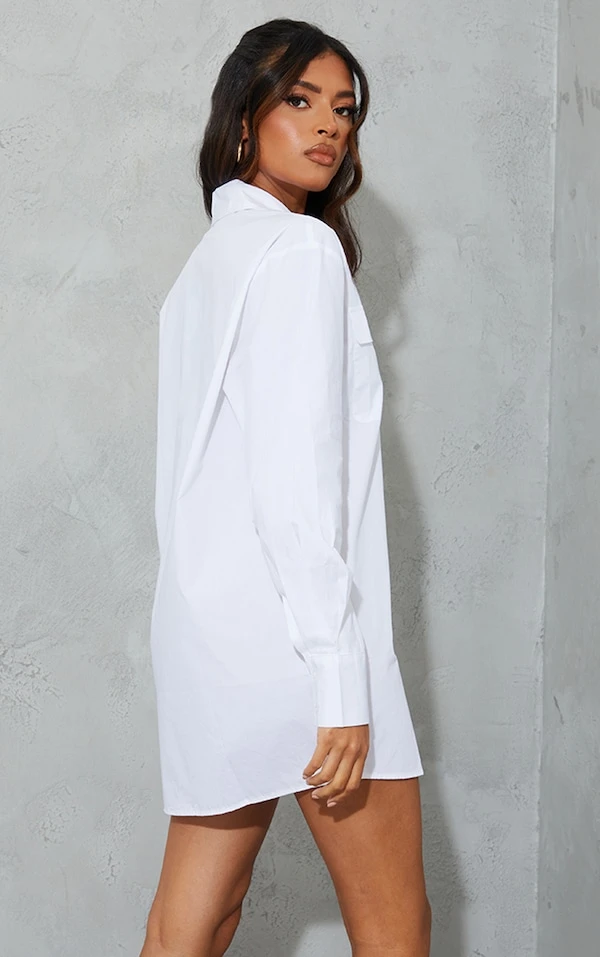 Robe chemise blanche à poches et manches longues