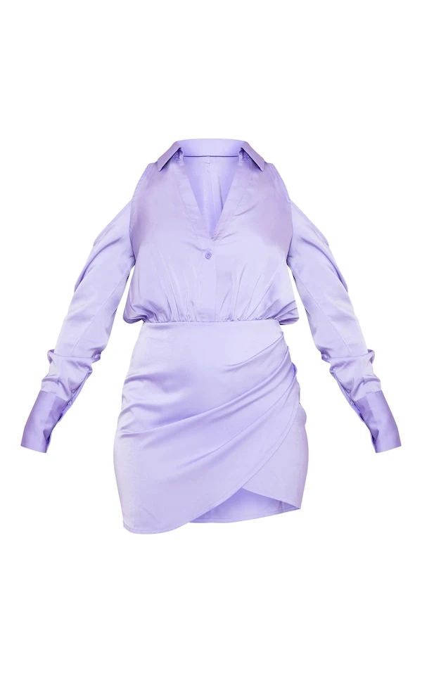 Robe Chemise Cache-coeur Satinée Lilas à épaules Dénudées