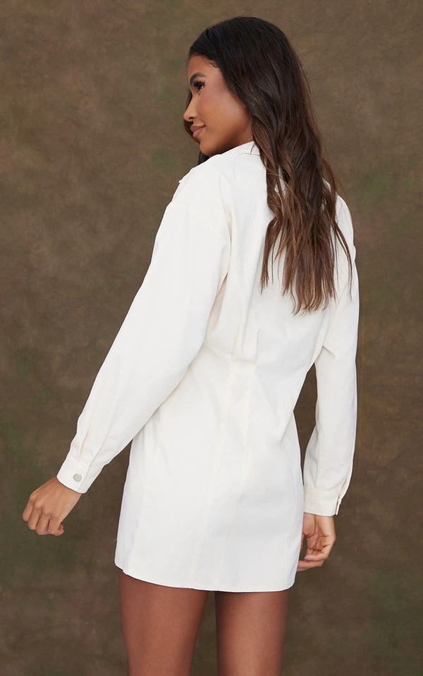 Robe chemise cargo sable à boutons-pression et taille ajustée
