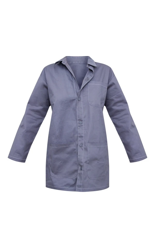 Robe chemise gris anthracite à coutures contrastantes et poches cargo