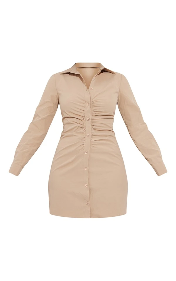 Robe chemise gris pierre à fronces et boutons asymétriques