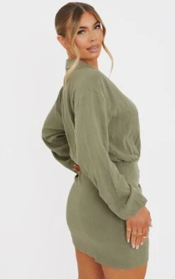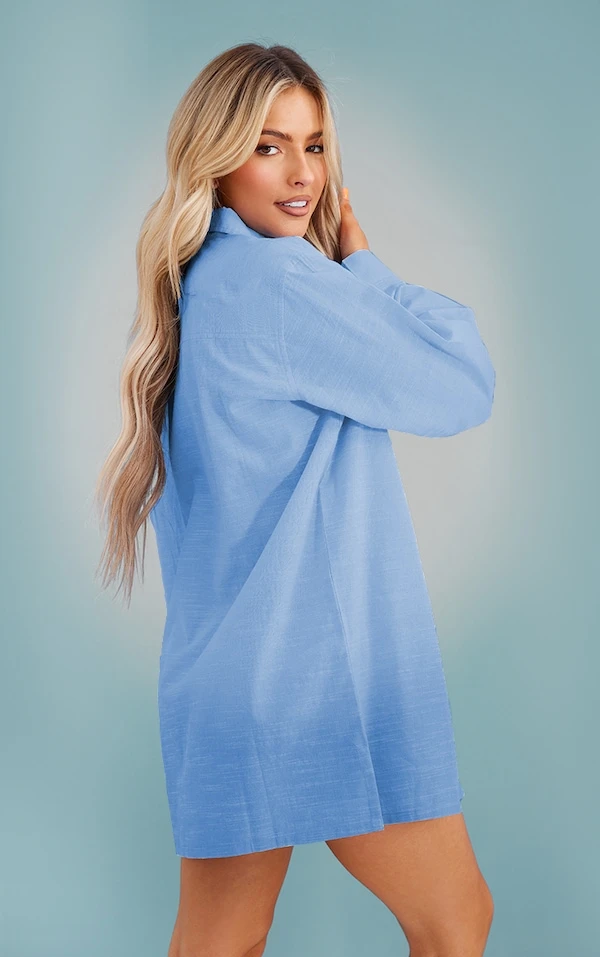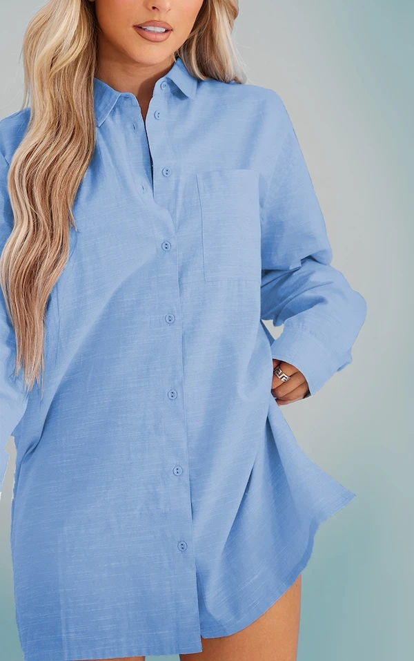 Robe Chemise Oversize Effet Lin Bleu Clair