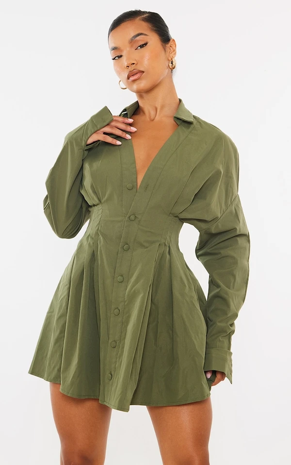 Divine dans cette robe chemise à la coupe oversize. Avec sa matière en maille tissée, son effet plissé et sa couleur kaki canon, on ne résiste pas. Portée avec une paire de mules et quelques accessoires dorés, cette robe met tout le monde d’accord !