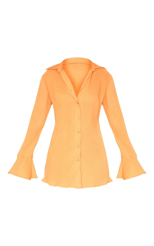 Coup de coeur sur cette robe chemise ! On adore sa couleur mandarine, ses manches flare canon et son effet plissé. Pour un look à tomber, elle se porte avec une paire de sandales et quelques bijoux dorés. Vous avez tout compris à la mode, vous !