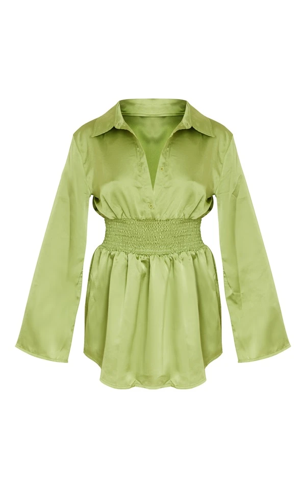 En amour avec le style chemise de cette robe. Avec sa matière satinée, sa couleur vert olive et son design froncé au niveau de la taille, on l’adore. Portée avec une paire de sandales plates et des lunettes de soleil, cette robe vous assure un look de summer queen sans faille !