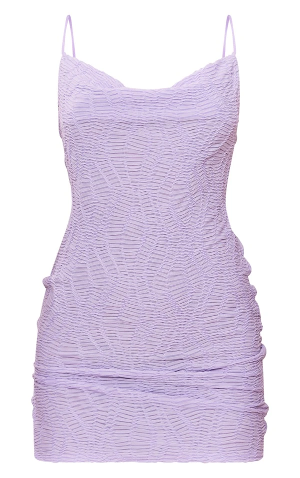 Robe Droite Texturée Lilas à Col Bénitier Et Bretelles