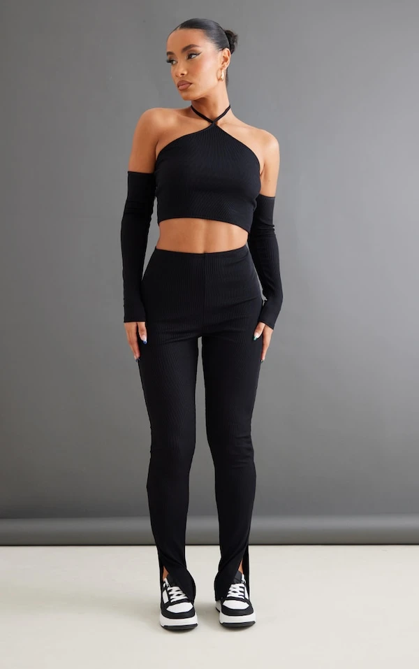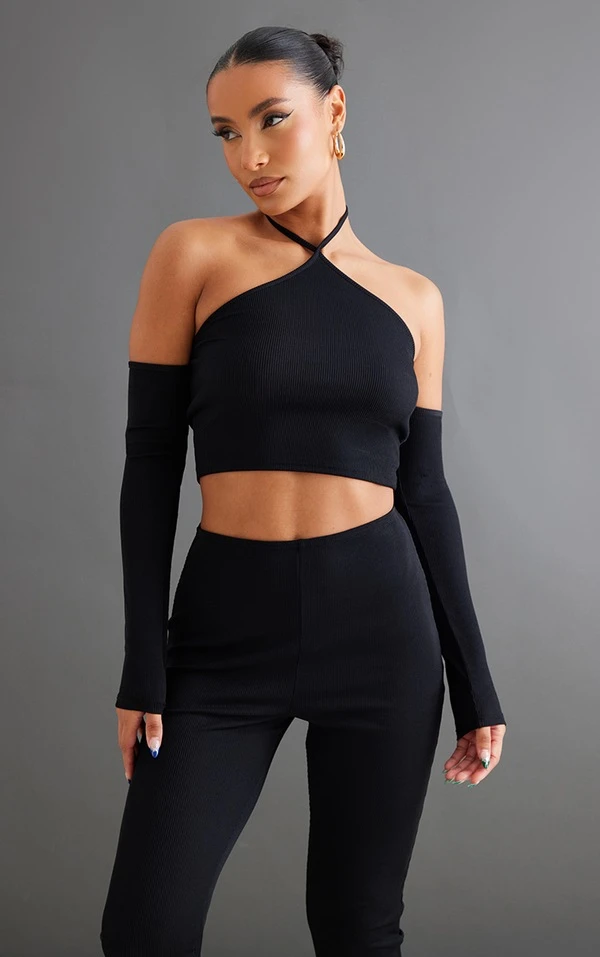 Trop belle dans ce look côtelé ! On adore le top avec son coloris noir rétro, son design à épaules dénudées et son style dos nu super canon. Plus qu’à enfiler le bas assorti et une paire de talons très hauts. Vous êtes canon.