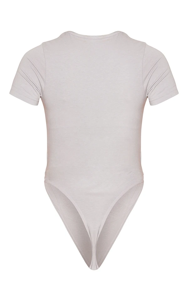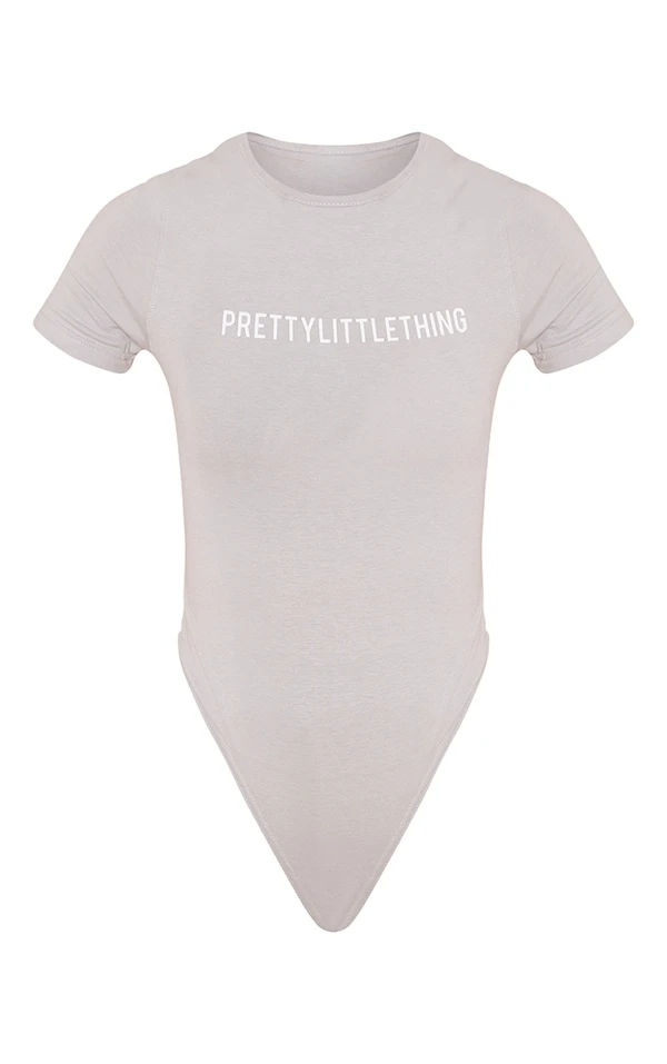 PRETTYLITTLETHING Body lilas gris à manches courtes et slogan imprimé